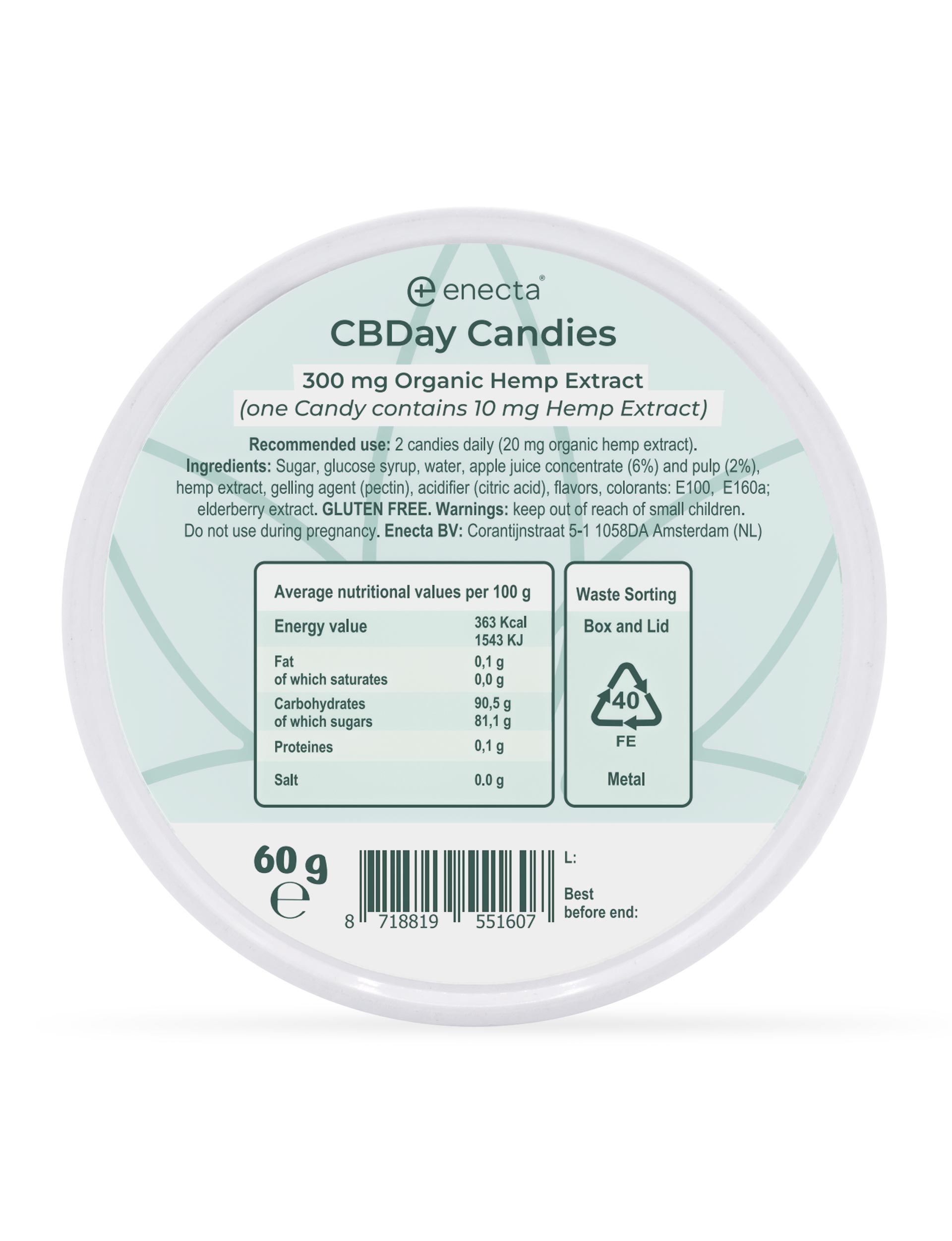 Quantità di CBD per prodotto: 300 mg. Ogni caramella contiene 10 mg di CBD.