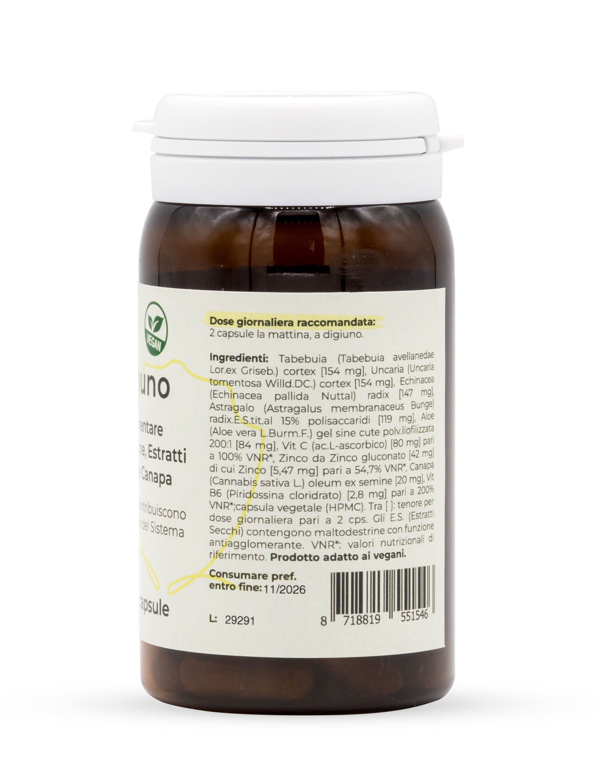 Ingredienti: Olio di canapa, Vitamina C, Vitamina B6, Zinco, Tabebuia, Uncaria, Echinacea e Astragalo